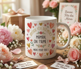 🎨 Texte, couleurs, style… mais aussi photo, logo ou design sur un thème qui touche votre maman : nous nous adaptons à vos souhaits pour créer un mug qui vous ressemble vraiment.